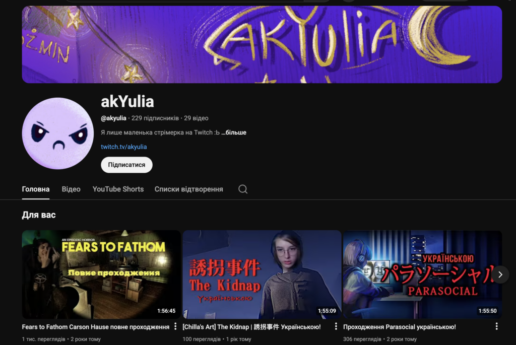 | akYulia | Twitch | Одна з перших українських стримерок на платформі |