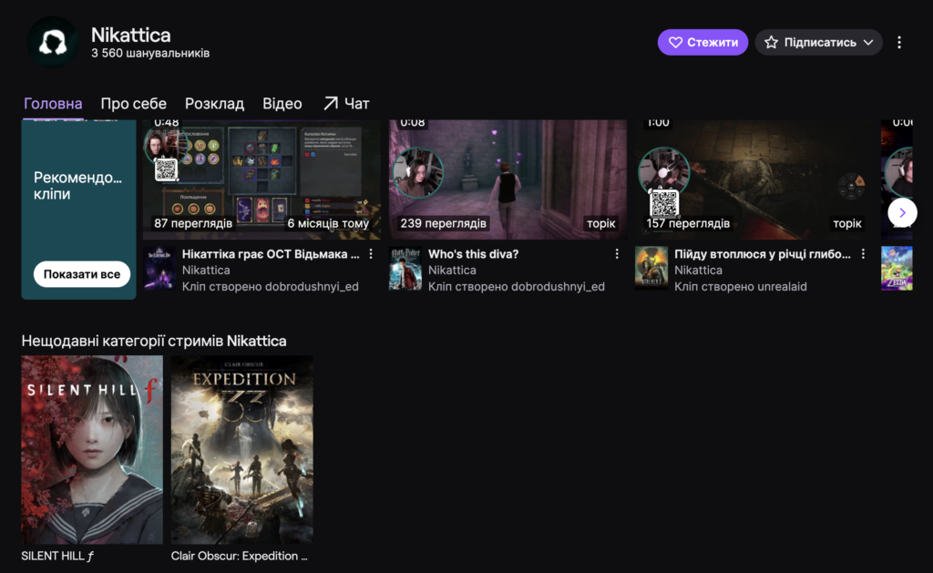 | Nikattica | Twitch | Одна з відомих стримерок з багаторічним досвідом і стабільною аудиторією |